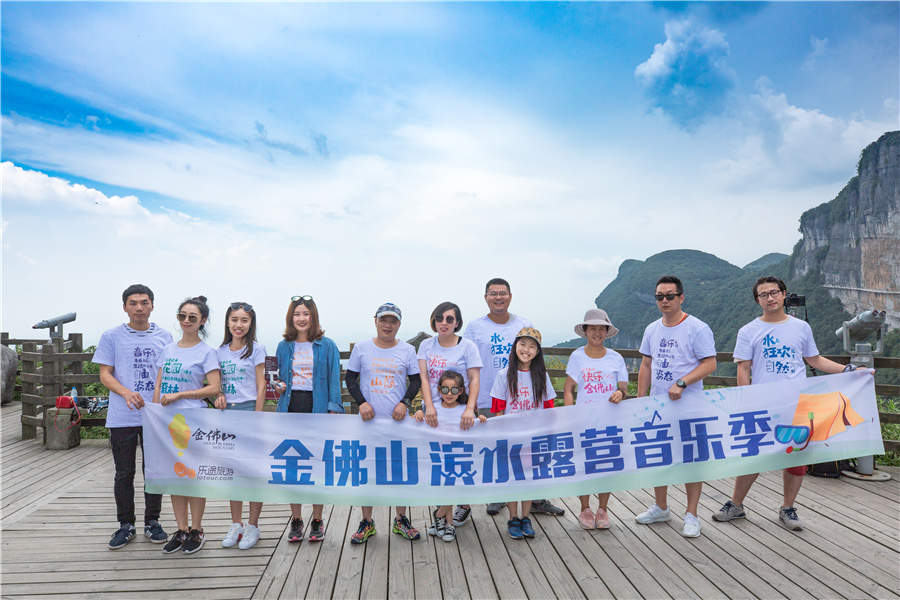 Tourism experts pose for a group photo at the Jinfo Mountain Scenic Area in Chongqing municipality. [Photo by Hu Bo/Provided to chinadaily.com.cn]