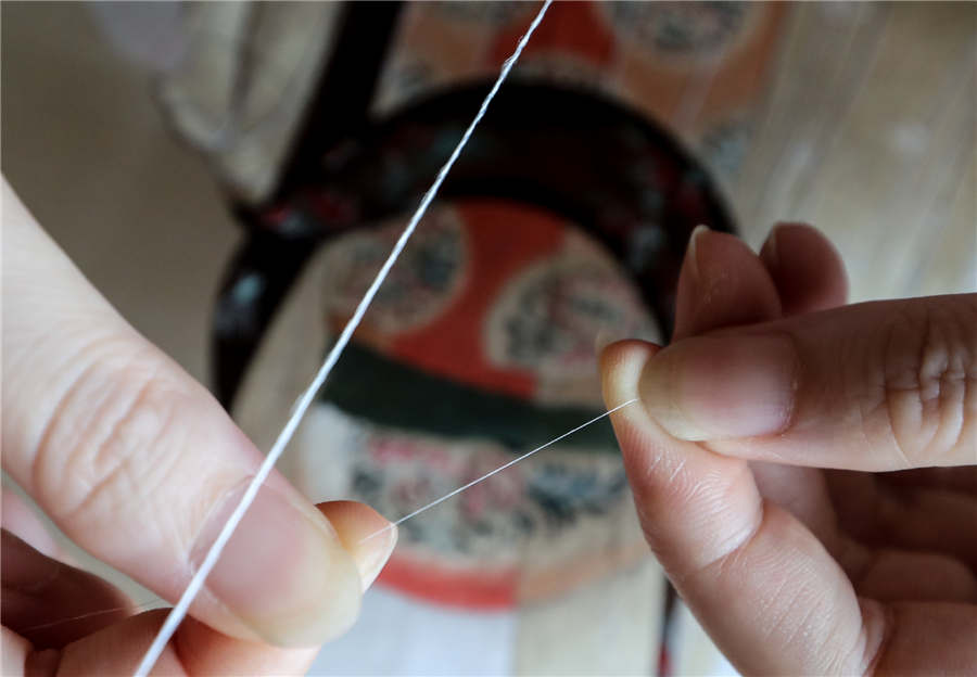 A worker processes thread in East China's Jiangsu province, July 25, 2018. [Photo/Xinhua]