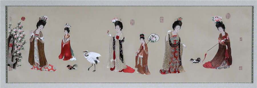 Photo taken on July 29, 2018 shows Suzhou embroidery version of a classic Chinese painting during an exhibition in Suzhou, East China's Jiangsu province. [Photo/Xinhua]