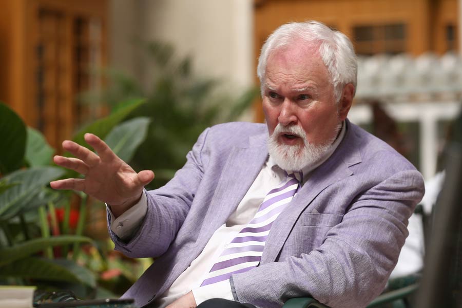 British author and consultant Hugh Peyman's book, China's Change: The Greatest Show on Earth, examines the country's economic miracle. [Photo by Zou Hong/China Daily] |