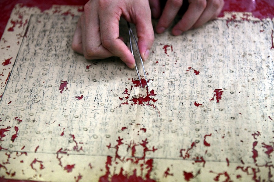 Gao Huiyun restores an ancient book at a workshop in Shijiazhuang, capital of North China's Hebei province, Aug 2, 2018. Gao Huiyun is a teacher of cultural relics restoration and protection at Hebei Vocational Art College. Gao has restored over 1,000 ancient books in her 13-year career time.[Photo/Xinhua]