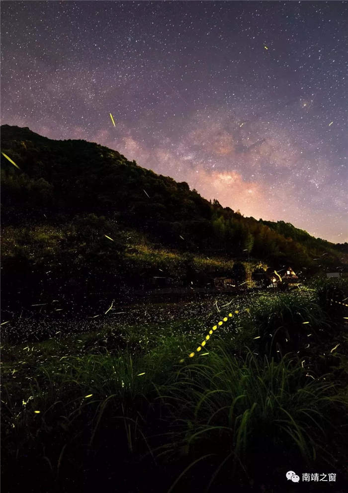 The beautiful starry sky above tulou or earthen buildings in Fujian province. [Photo provided to chinadaily.com.cn]