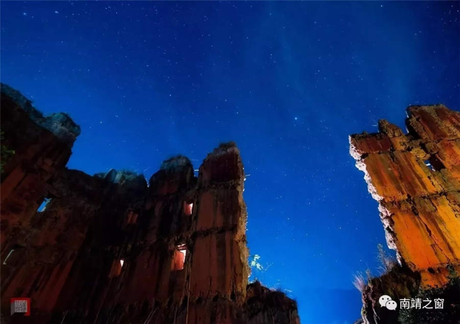 The beautiful starry sky above tulou or earthen buildings in Fujian province. [Photo provided to chinadaily.com.cn]