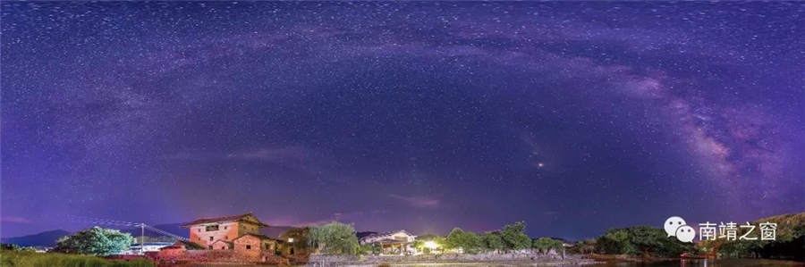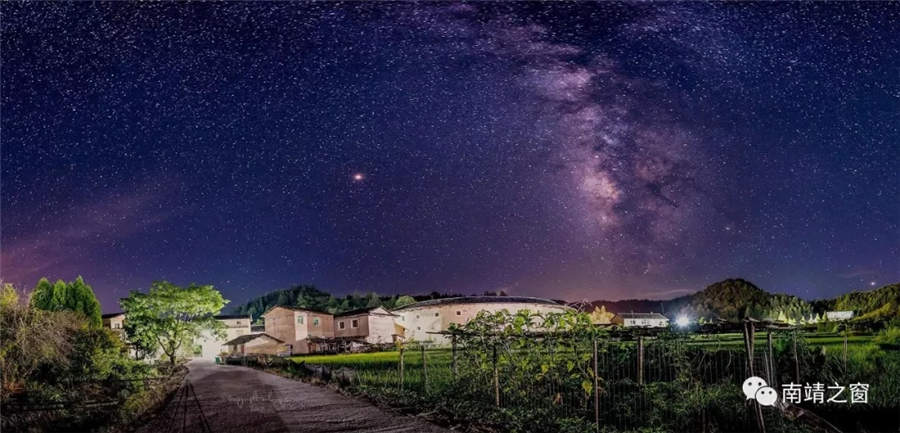 The beautiful starry sky above tulou or earthen buildings in Fujian province. [Photo provided to chinadaily.com.cn]