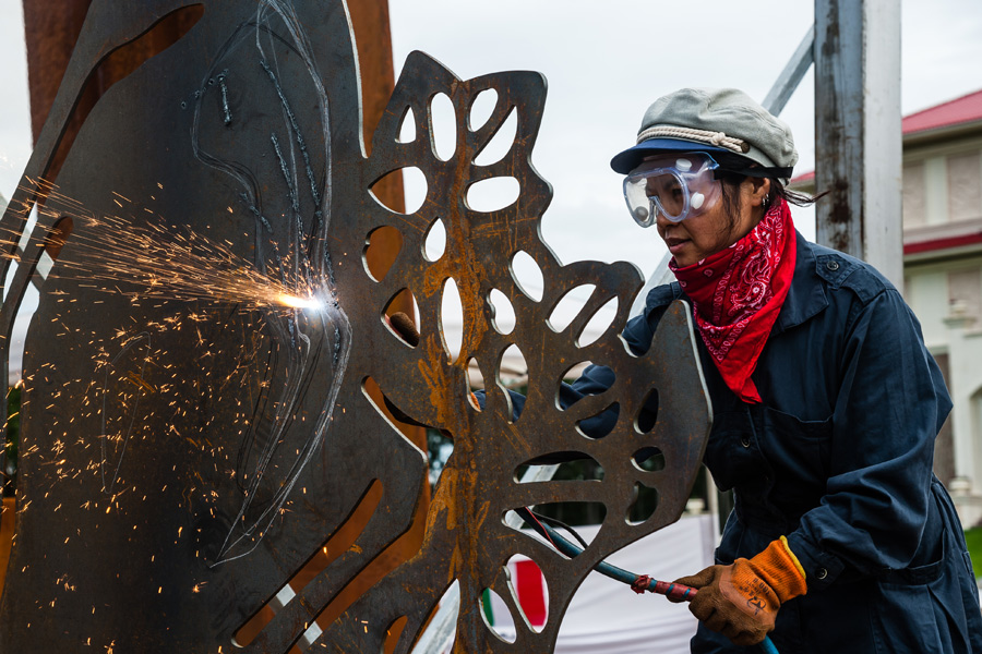 Some 20 artists from 14 countries and regions demonstrate their artistic philosophy and skills in the sculpture park in Tonghe, Northeast China's Heilongjiang province, at an event organized by the International Sculpture Symposium Alliance and the local government. [Photo provided to China Daily] |