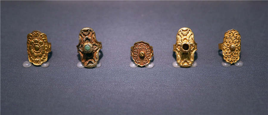 These gold rings were unearthed from the Chenguo Princess's tomb. [Photo provided to chinadaily.com.cn]