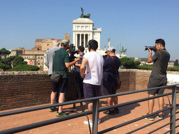 Crew of From Chang'an to Rome, a 100-episode documentary series, work in Rome.[Photo provided to China Daily] |