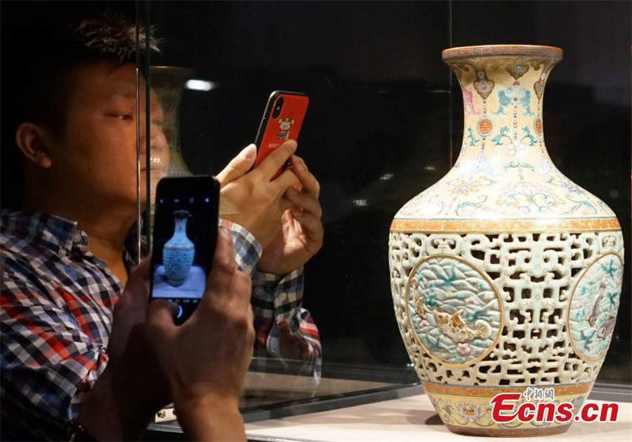 A vase made during the reign of Emperor Qianlong (1700s) fetched 149 million Hong Kong dollars ($19 million) at Sotheby's autumn auctions in Hong Kong. [Photo/China News Service]