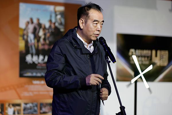 Director Chen Kaige delivers a speech at Beijing Film Academy on Oct 15. [Photo by Song Ci/China Daily]