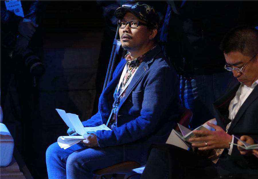 Lyric writer Vincent Fang (left) participates in the event at the Palace Museum in Beijing, on Oct 22, 2018. [Photo by Jiang Dong/Asianewsphoto]
