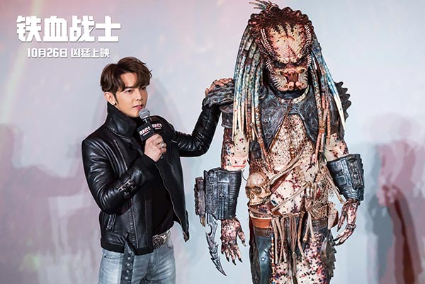 Actor Jiro Wang promotes the film in the Beijing opening ceremony of The Predator on Oct 23. [Photo provided to China Daily]