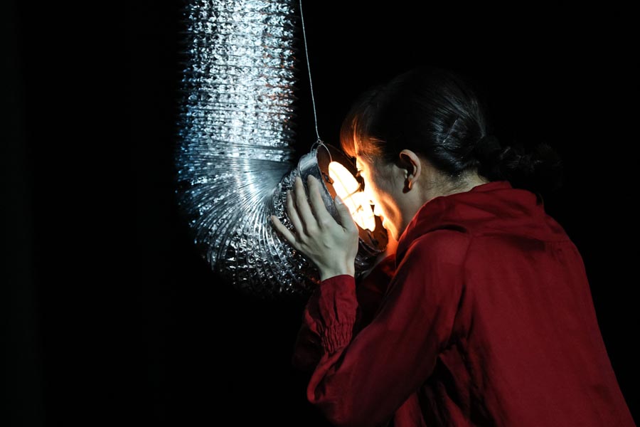 Inside by Gong Xingxing also has a title in Chinese - Meiyou Gudao, meaning "there is no lonely island". It's an apt description of the piece, which explores the challenges of forging relationships in the information era - and does so with optimism.