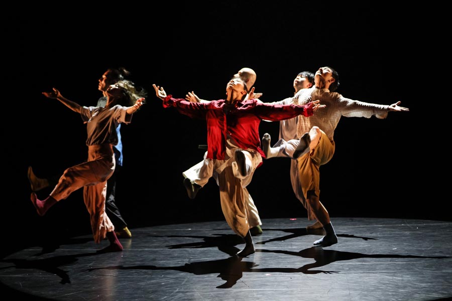 Inside also benefits from an eclectic soundtrack that drives the shifting moods onstage. In one scene, Louis Armstrong's carefree cover of the classic French song La Vie en Rose - which means "life seen through rosy hues" - plays as pink lighting illuminates a performer watching others lounge on the ground. In another, a soft piano recording strikes a more tender chord as a couple moves together in a slow, fluid harmony during a duet.