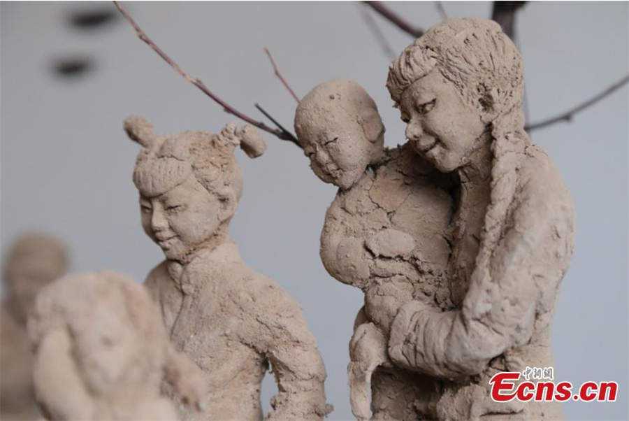 Clay sculpture enthusiast Zhao Tiejun shows his creations featuring past rural life and farming traditions in his home in Pingliang city, Northwest China's Gansu province, Oct 23, 2018. Zhao has been fascinated with the hobby of making clay figurines for two decades as he believes the handicraft can help younger generation learn about the countryside life now increasingly transformed. [Photo/China News Service]