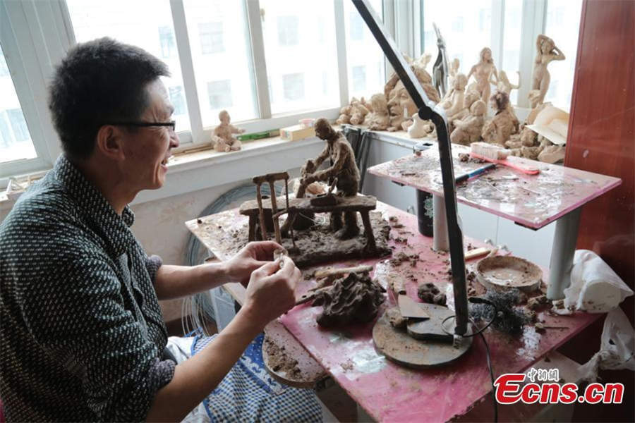 Clay sculpture enthusiast Zhao Tiejun shows his creations featuring past rural life and farming traditions in his home in Pingliang city, Northwest China's Gansu province, Oct 23, 2018. Zhao has been fascinated with the hobby of making clay figurines for two decades as he believes the handicraft can help younger generation learn about the countryside life now increasingly transformed. [Photo/China News Service] |