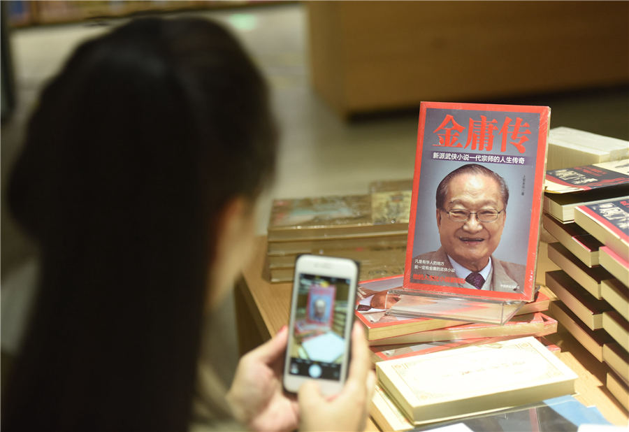 To commemorate the late wuxia novelist Louis Cha, many bookstores in China set up special counters for his books and biographies, attracting readers — especially wuxia fans. A Xinhua Bookstore in Hangzhou, East China's Zhejiang province, offers one such collection on Oct 31, 2018. [Photo by Long Wei/Asianewsphoto]