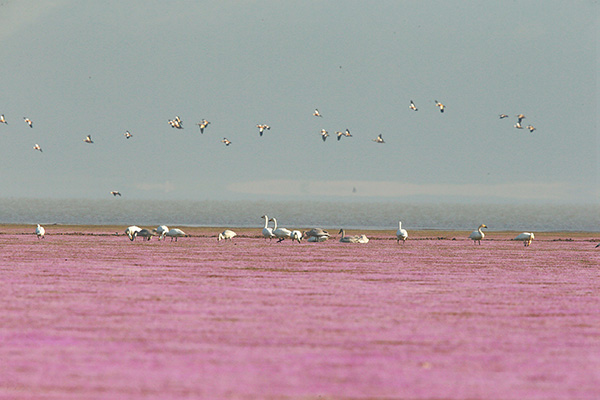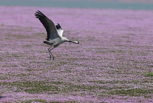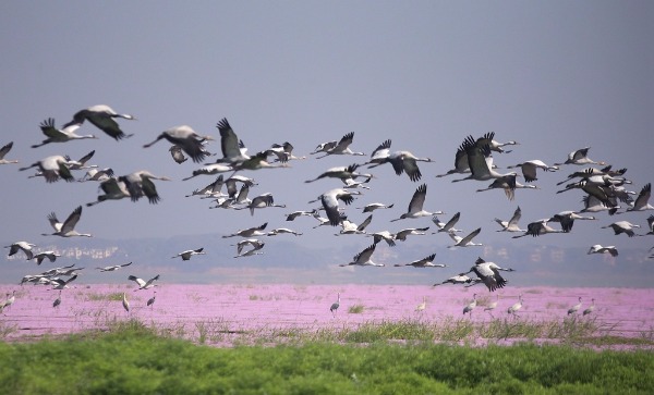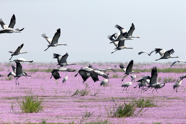 In dry seasons, water level falls in Poyang Lake, the country’s largest fresh-water lake located in central China's Jiangxi province. Wild flowers, mostly Polygonum, flourish, turning the exposed land into a pink world. From October to December is the best period to enjoy the stunning view of not only the flowers, but also of hundreds of cranes and other birds. The lake also offers paragliding experience to enjoy the scenery.