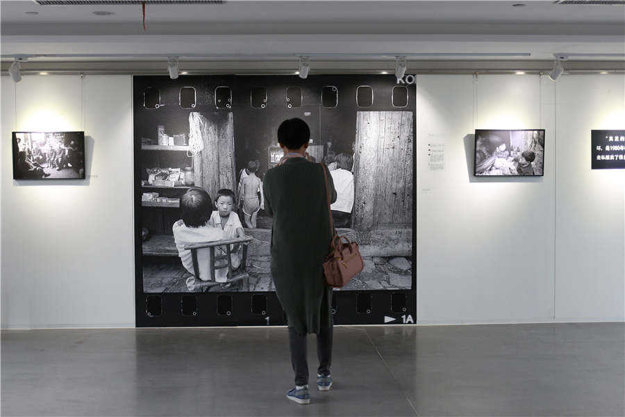 A visitor views a themed exhibition by photographer Zhang Xinmin during the 3rd Ningbo International Photography Week held in Ningbo city, Zhejiang province, Oct 28, 2018. [Photo by Wu Xiaohui/Asianewsphoto]