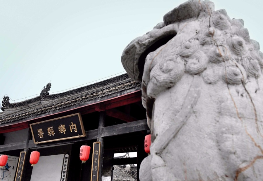 Aerial photo taken on Nov 14, 2018 shows the historical site of the ancient Neixiang County Government Office in Neixiang county, Central China's Henan province, Nov 14, 2018. The Neixiang County Government Office, or Neixiang Magistrate Office, was first set up in 1304 of the Yuan Dynasty (1271-1368). The architectural complex, covering an area of over 40,000 square meters and comprising more than 200 rooms, is one of the best preserved county level magistrate offices in the feudal times.[Photo/Xinhua] |