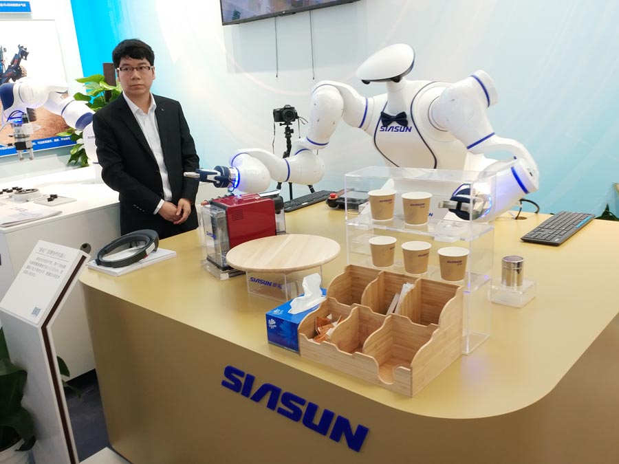 At the exhibition's technology section, coffee is made by robots. [Photo by Wang Xuquan/chinadaily.com.cn]