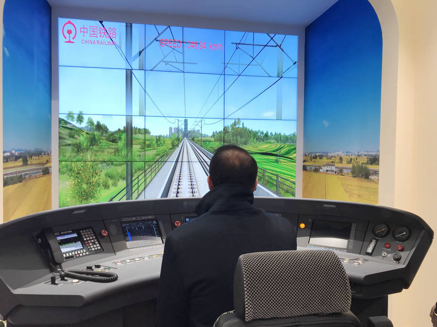 A foreigner tries out an interactive device on Nov 19, 2018, experiencing a two-minute virtual drive on a bullet train from Beijing to Shanghai. [Photo by Li Ping/chinadaily.com.cn]