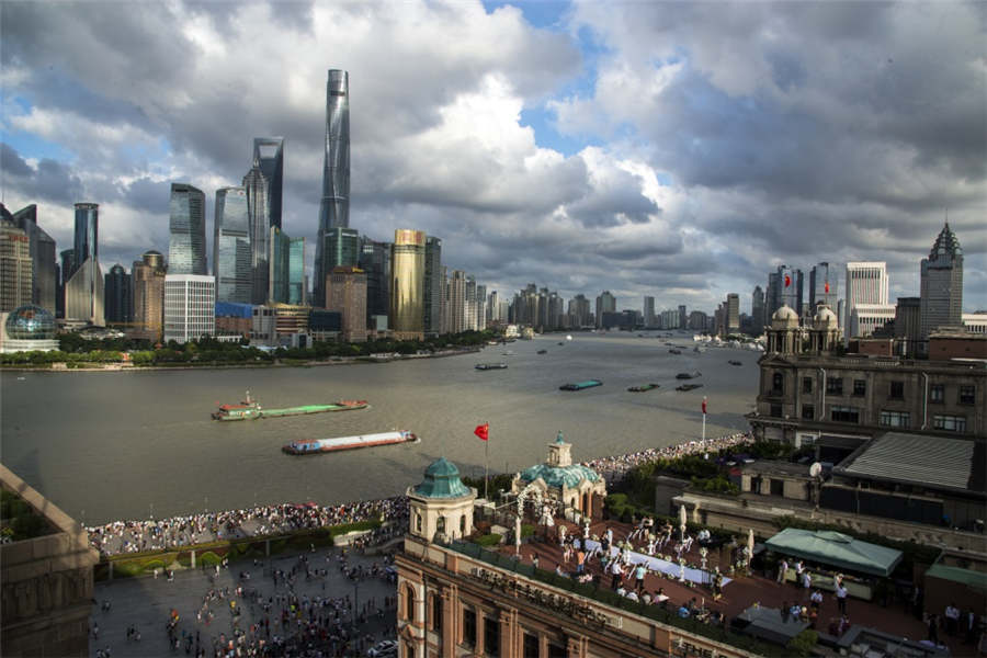 Skyscrapers rise above the Huangpu River, as seen from the rooftop of the Fairmont Peace Hotel, Aug 19, 2018. [Photo by Zhu Yaozhong/provided to chinadaily.com.cn] |