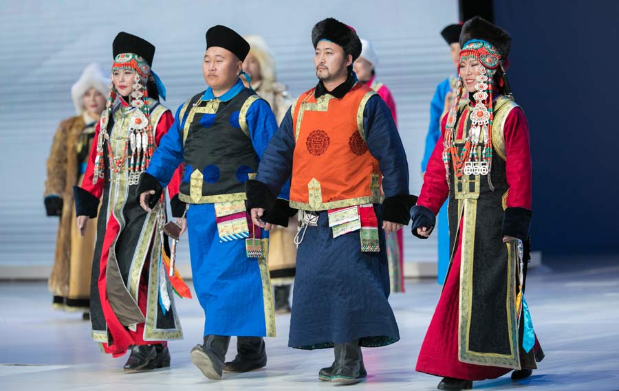 The 15th Mongolian Costume Art Festival opened in Hohhot, Inner Mongolia autonomous region, on Nov 19. More than 100 delegates will display nearly 2,000 sets of Mongolian costumes during the six-day event. The festival will hold Mongolian costume competition and other activities. [Photo by Ding Genhou/Asianewsphoto]