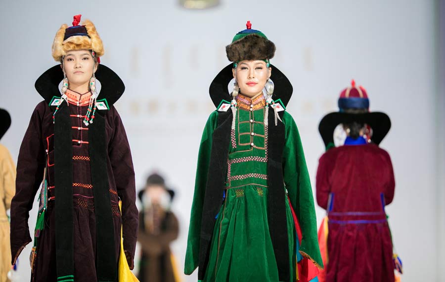 The 15th Mongolian Costume Art Festival opened in Hohhot, Inner Mongolia autonomous region, on Nov 19. More than 100 delegates will display nearly 2,000 sets of Mongolian costumes during the six-day event. The festival will hold Mongolian costume competition and other activities. [Photo by Ding Genhou/Asianewsphoto]