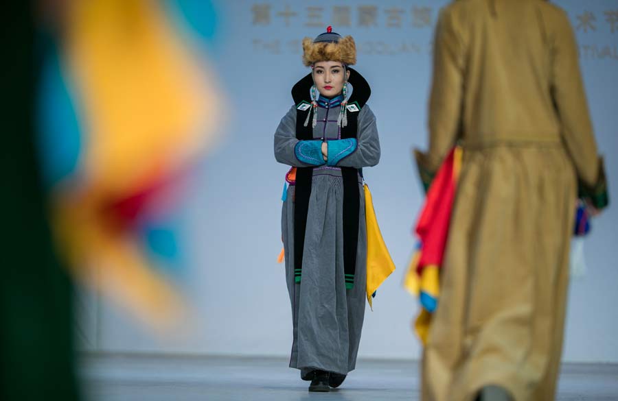 The 15th Mongolian Costume Art Festival opened in Hohhot, Inner Mongolia autonomous region, on Nov 19. More than 100 delegates will display nearly 2,000 sets of Mongolian costumes during the six-day event. The festival will hold Mongolian costume competition and other activities. [Photo by Ding Genhou/Asianewsphoto]