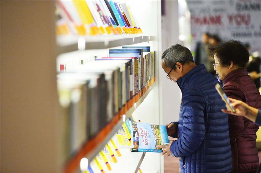 Readers select books in the China-Singapore Friendship Library, a joint project between China and Singapore, in North China's Tianjin municipality, Nov 18, 2018. [Photo/Xinhua]