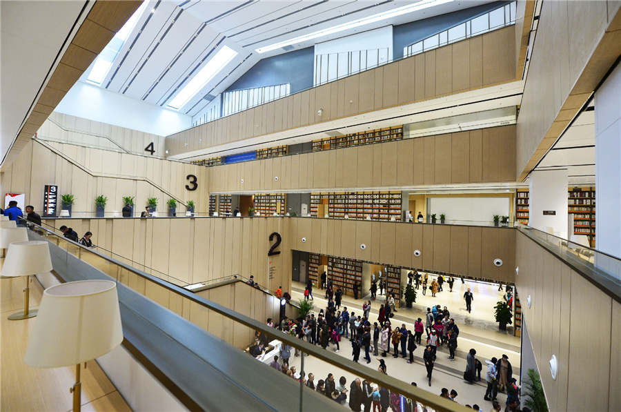 Readers visit the China-Singapore Friendship Library, a joint project between China and Singapore, in North China's Tianjin municipality, Nov 18, 2018. [Photo/Xinhua]