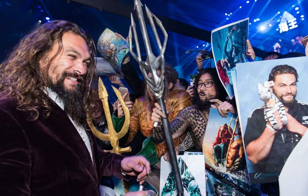 Momoa appears in Beijing on Nov 18 to promote the film, which will premiere in China two weeks earlier than in North America. [Photo provided to China Daily] |