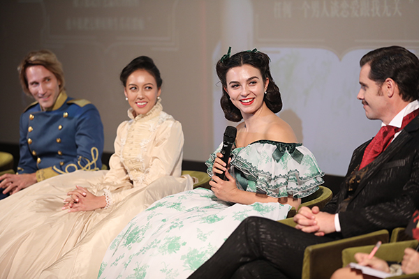 The actresses and actors of a new musical version of Gone With the Wind talk about the production at a Beijing news conference on Nov 1. [Photo provided to China Daily] |