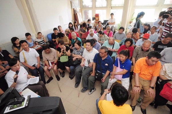 Hongdandan’s cofounder Wang Weili shows free movies at the service center for the visually challenged every Saturday, and explains thee films so that they can understand the movies.