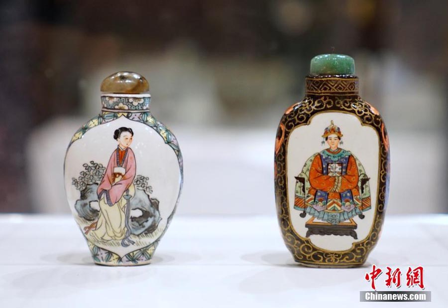 The Golden Splendors: 20th-Century Painted Porcelains of Hong Kong is underway at Hong Kong Heritage Museum, Dec 18, 2018. As a world trading port in the 20th century, Hong Kong developed unique painted porcelain with diverse shapes and rich decorations using continually innovative techniques. The exhibition showcases painted porcelain made by local painters and factories, including vintage porcelain and armorial porcelain, produced mainly for export, as well as ceramic items for decoration and household use commonly found in Hong Kong. [Photo/ecns.cn] |