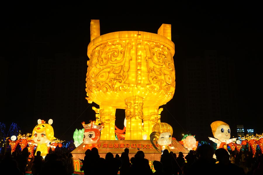 A giant LED lantern of a ding, an ancient cooking vessel, Jan 12, 2019. [Photo by Li Ping/chinadaily.com.cn]