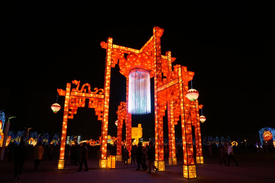 A lantern shaped like a traditional Chinese arch, Jan 12, 2019. [Photo by Li Ping/chinadaily.com.cn]