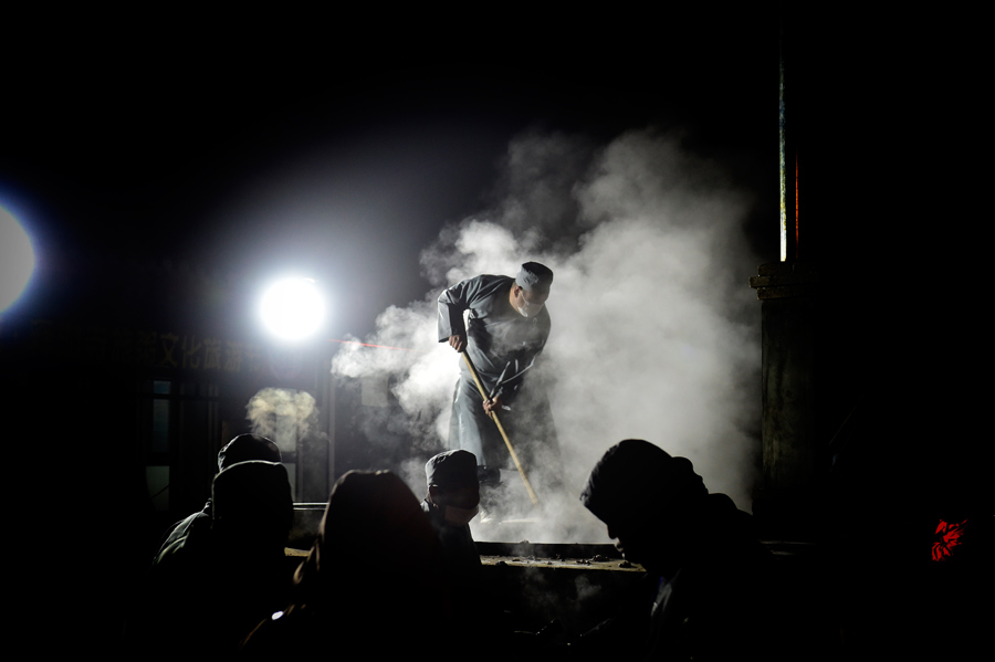 People line up for a free bowl of Laba porridge at Sakya Temple in Yuxian county, Zhangjiakou city, North China's Hebei province, in the early morning of Jan 13, 2019. It was the eighth day of the 12th month on the Chinese lunar calendar, a day widely regarded as the prelude to Spring Festival, or Chinese New Year. Eating Laba porridge is an age-old ritual that brings blessings for a healthy and auspicious new year. [Photo by Sun Ge/provided to chinadaily.com.cn]