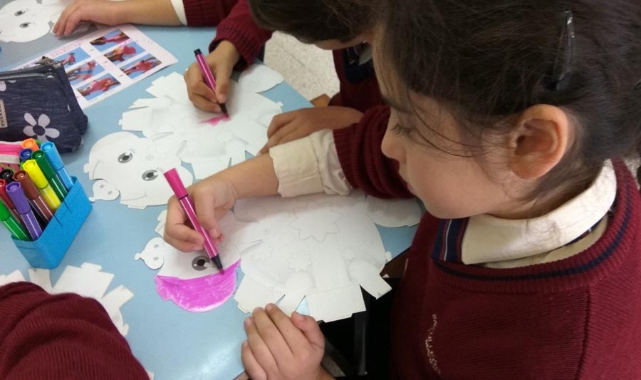 Students make pig-themed paper art in the China Cultural Center in Malta on Jan 10, 2019. [Photo/Chinaculture.org]