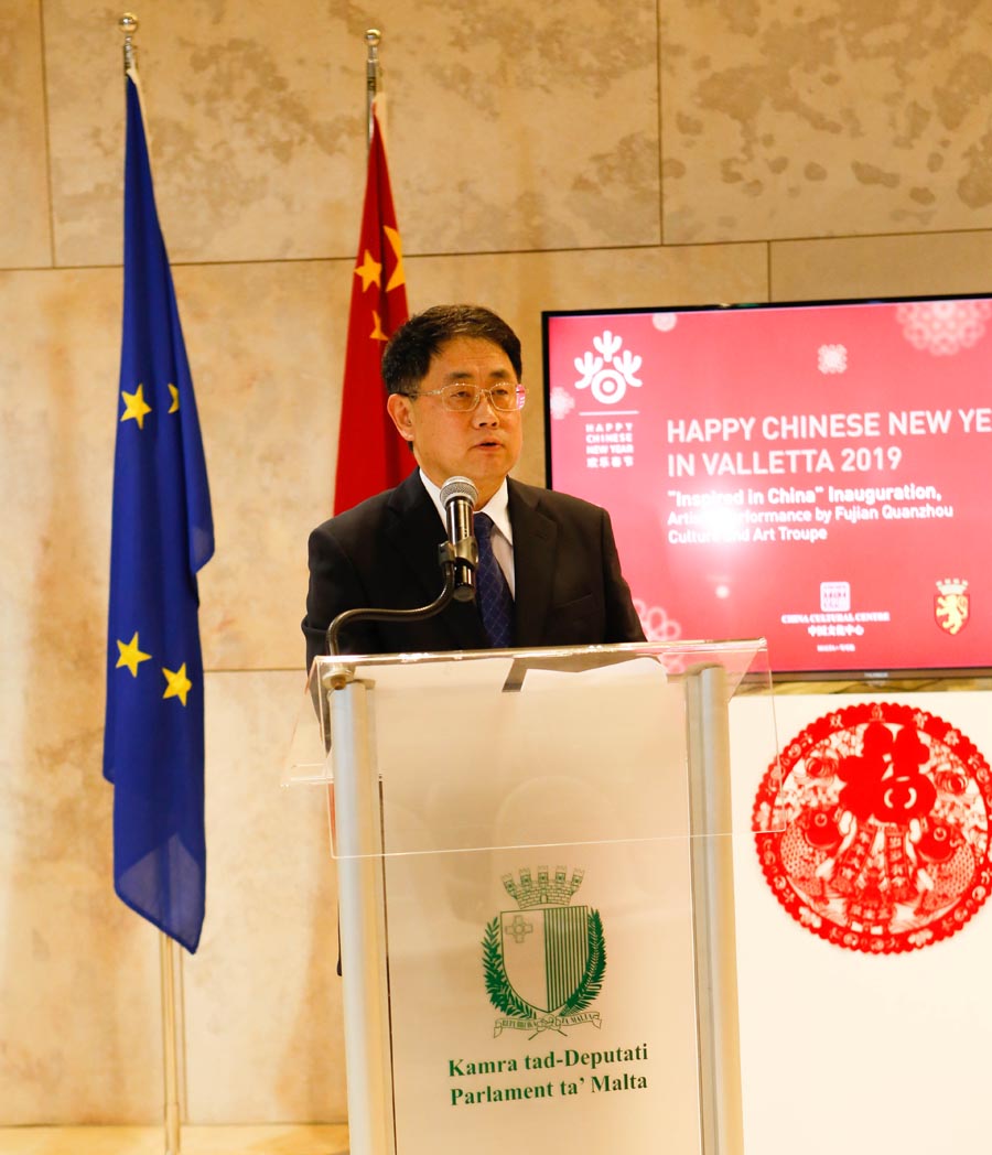 Jiang Jiang, Chinese ambassador in Malta, speaks at the event on Jan 18, 2019. He said Chinese New Year is the most important festival for the Chinese people, and that he hopes the event could help local people know more about the country's biggest festival and its traditions. [Photo/Chinaculture.org]