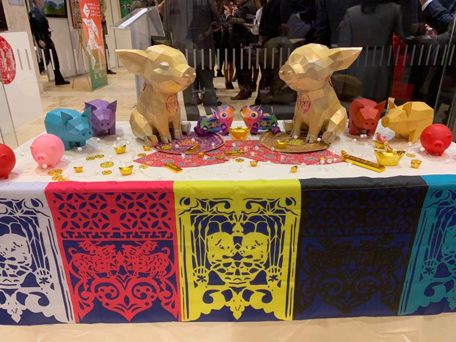 Pig-themed artworks are on show at the event on Jan 18, 2019. [Photo/Chinaculture.org]