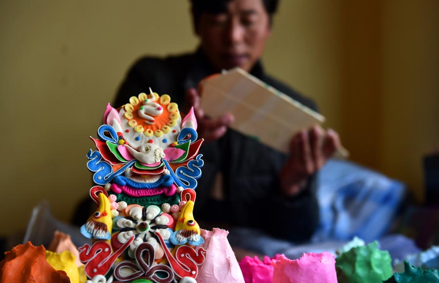 A carefully molded butter figurine pictured in Lhasa, Jan 22, 2019. [Photo/Xinhua]