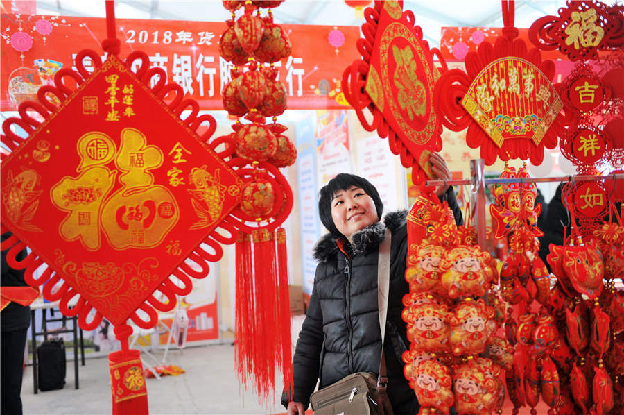 Citizens do special purchases for the upcoming Spring Festival, in Qingdao city, Shandong province, Feb 3, 2018. [Photo by Yu Fangping/Asianewsphoto] |