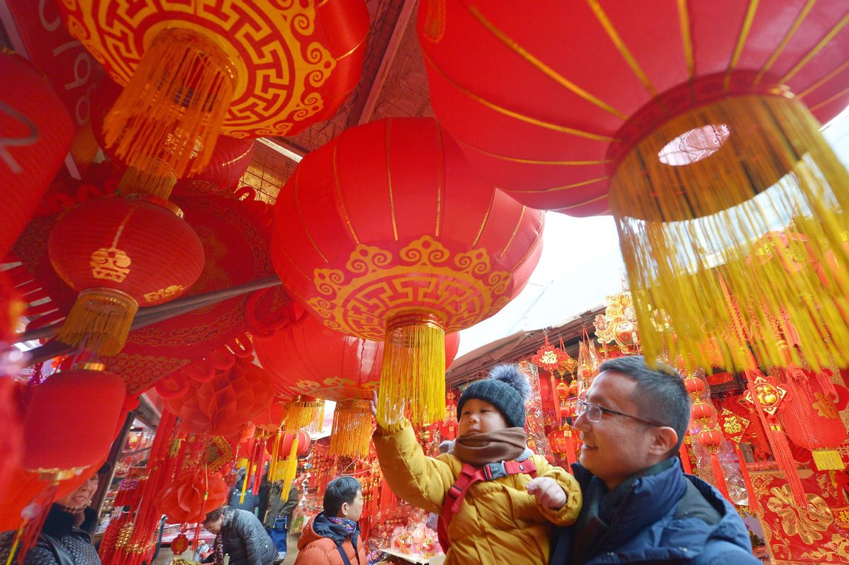 People select the Spring Festival decorations at a market in Qingdao, East China's Shandong province, Jan 26, 2019. The Spring Festival, or the Chinese Lunar New Year, falls on Feb 5 this year. [Photo/Xinhua]
