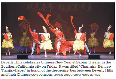 LOS ANGELES - While scores of little white Christmas lights still twinkled along the streets of Beverly Hills on Friday night, the affluent Southern California city was embracing another holiday tradition: Chinese Lunar New Year.