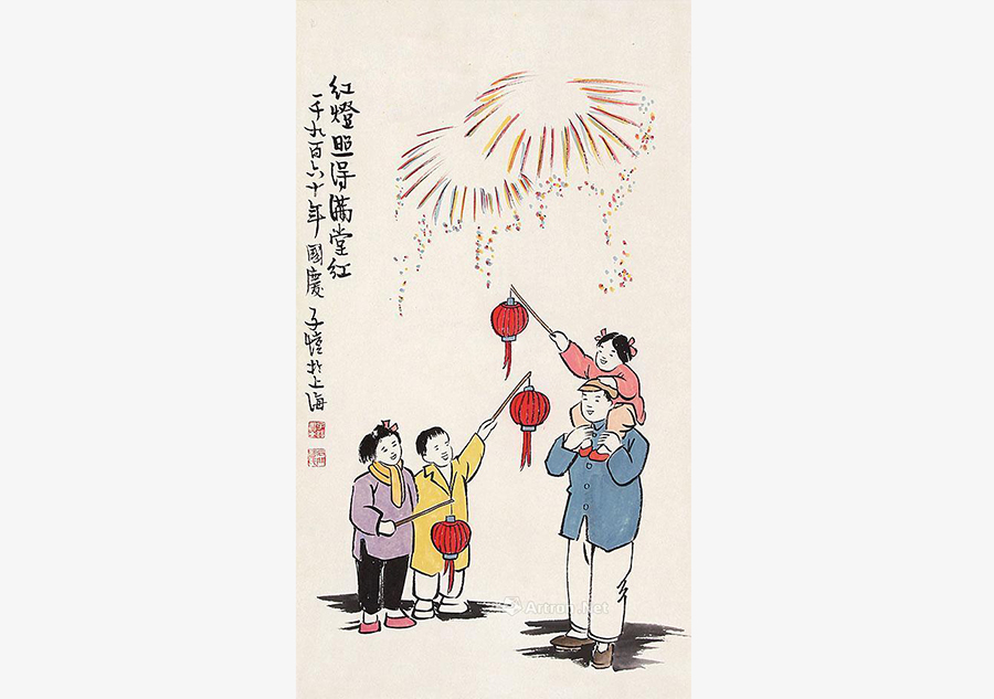 Feng Zikai (1898-1975) was a famous Chinese master painter and cartoonist. Among Feng's numerous creations, his most famous work was considered children's pictures. Paintings by Feng Zikai are simple but warm. The picture above shows happy people under Spring Festival fireworks.