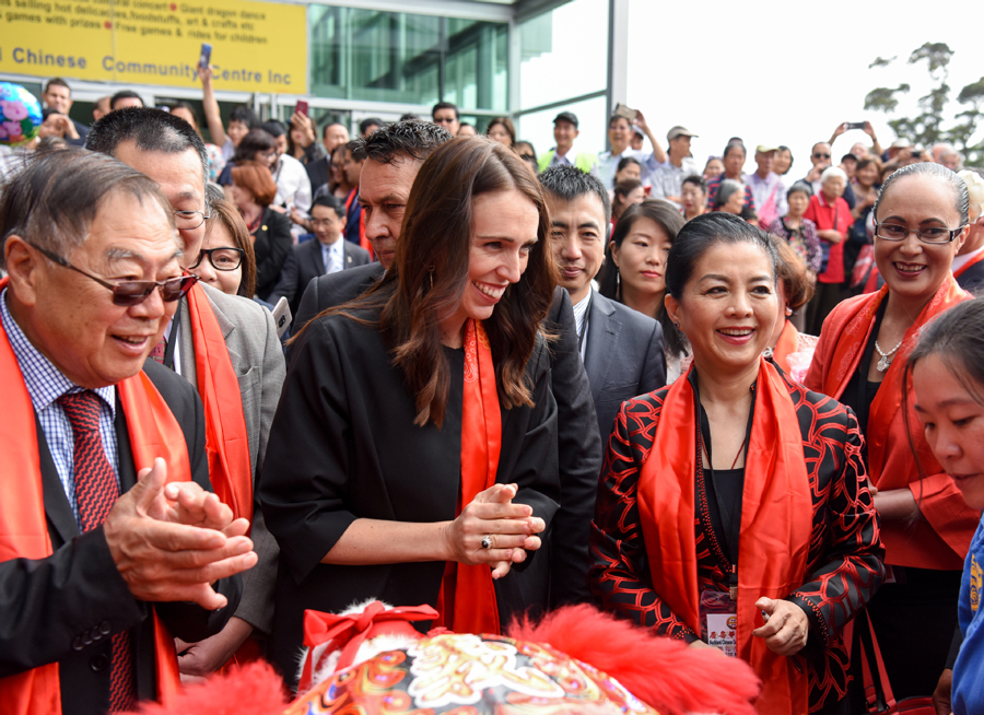 New Zealand Prime Minister Jacinda Ardern and Chinese Consul General in Auckland Xu Erwen participate in the 2019 Chinese New Year Festival and Market Day in Auckland, New Zealand, Feb 2, 2019. The 2019 Chinese New Year Festival and Market Day organized by Auckland Chinese Community Center kicked off here on Saturday.