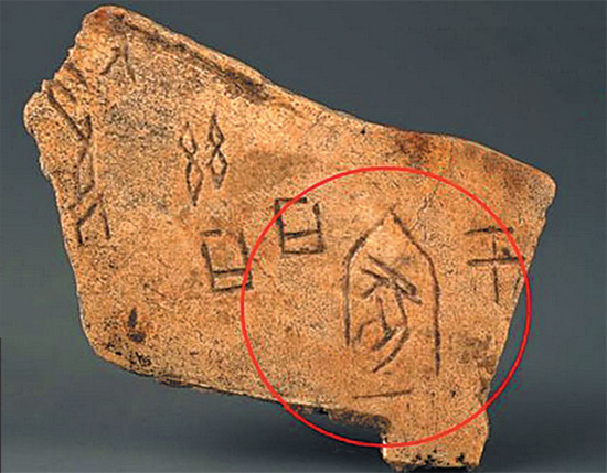 An oracle bone features a character meaning family. The lower part is a hieroglyph for pig. [Provided to China Daily] |