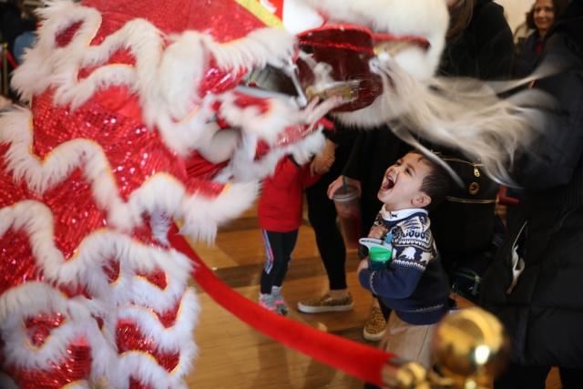 A boy watches a lion dance during the 2019 Lunar New Year Celebration at the John F. Kennedy Center for the Performing Arts in Washington DC on Feb 9, 2019. [Photo by Zhao Huanxin/chinadaily.com.cn] |