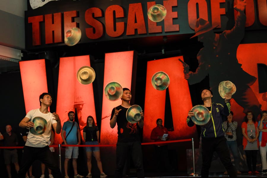 A Chinese New Year flash mob entertains people at the Te Papa Museum in Wellington, New Zealand on Feb 9, 2019. As part of the cultural activities to celebrate Chinese New Year, the event was organized by the China Cultural Center in New Zealand. Acrobats from a troupe in East China's Shandong province were invited to perform. [Photo/Chinaculture.org]